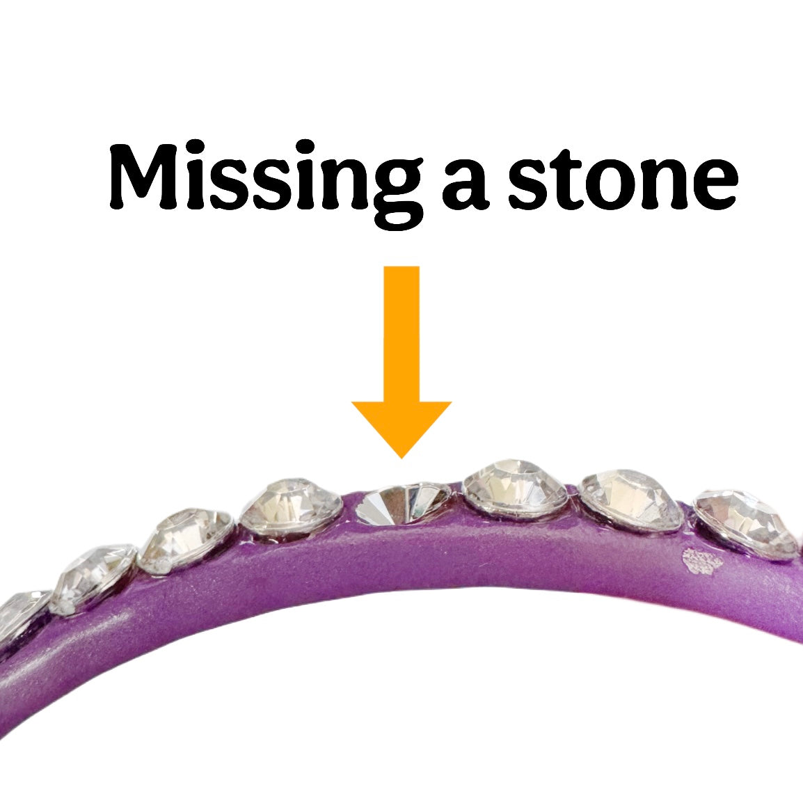 This is a clearance item and the purple bangle is missing 1 stone. Not really noticeable.