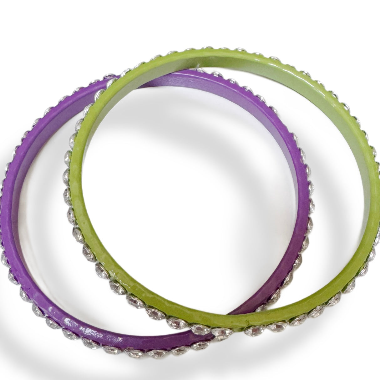 2 Metal Enamel Rhinestone Bangles- 1 stone missing