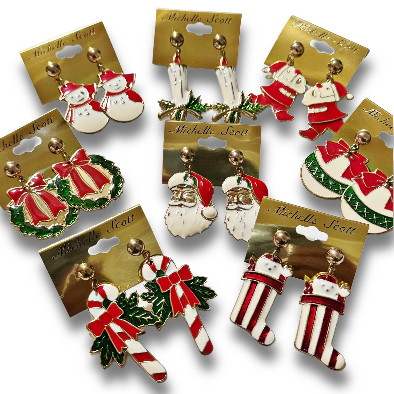 Cute little Christmas earrings in a variety of print. Earrings measure 2 inches in length and are for pierced ears. Enamel metal
