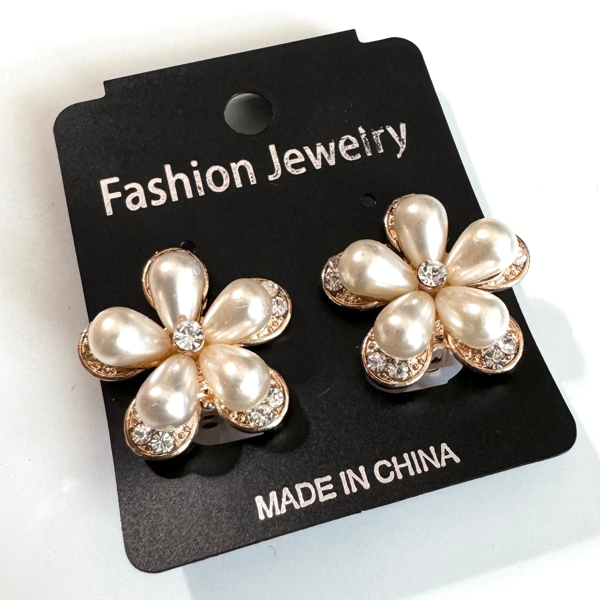Clip on- pearls and rhinestones
