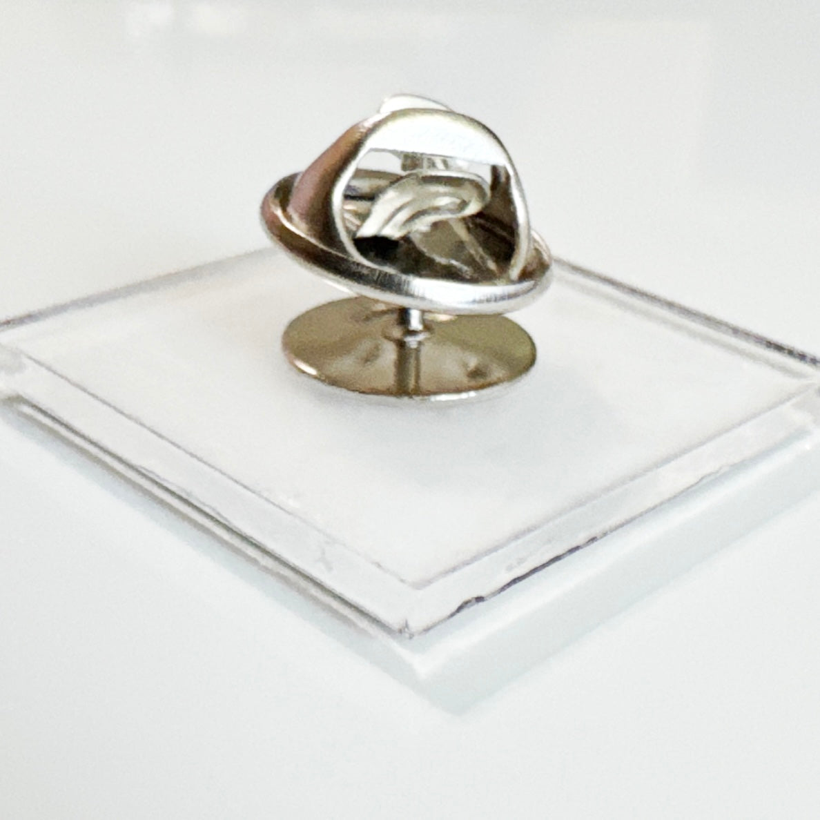 Lapel pin measures 1 inches in length or diameter. Made of durable plastic and sealed with a high gloss finish. Stainless steel tie tack pin.