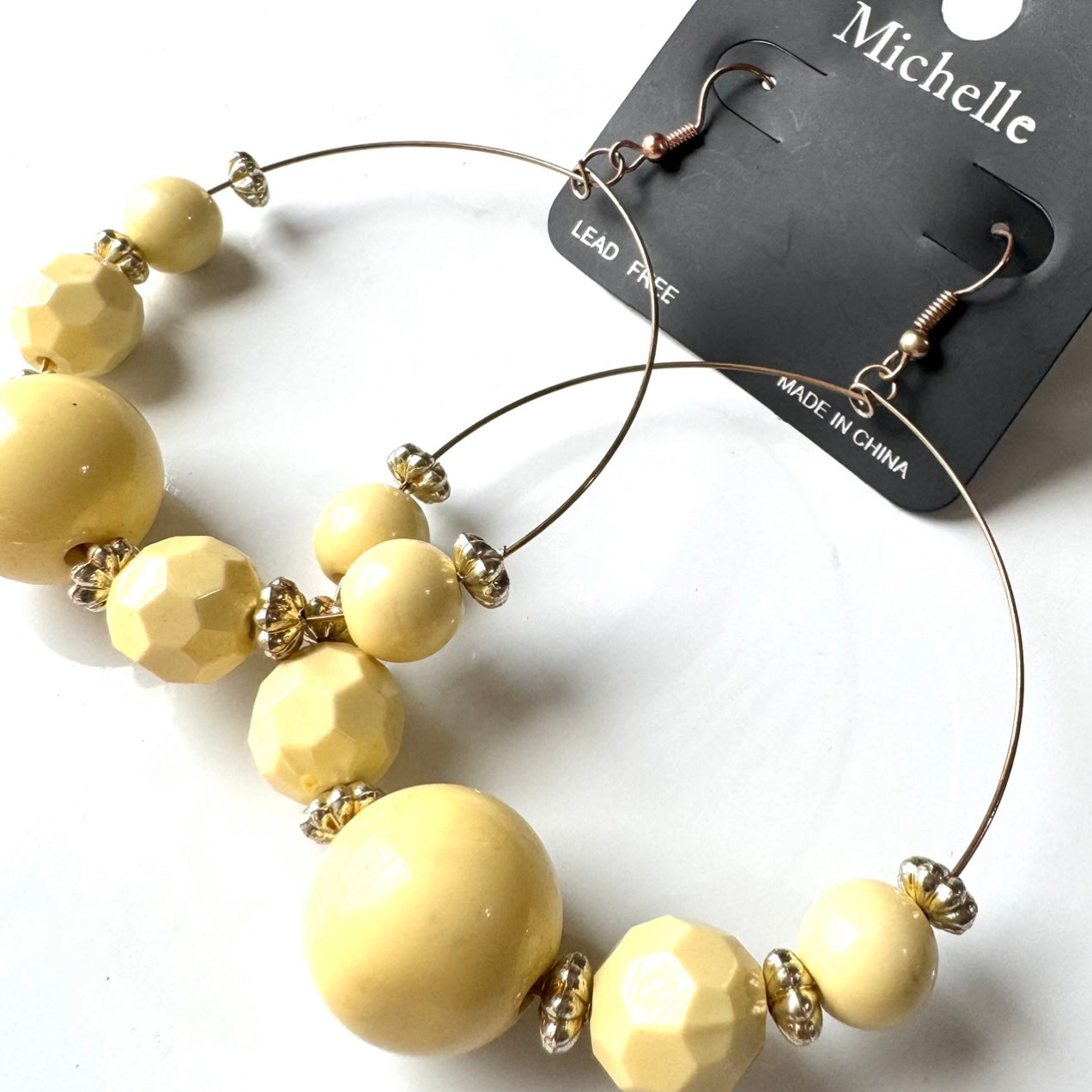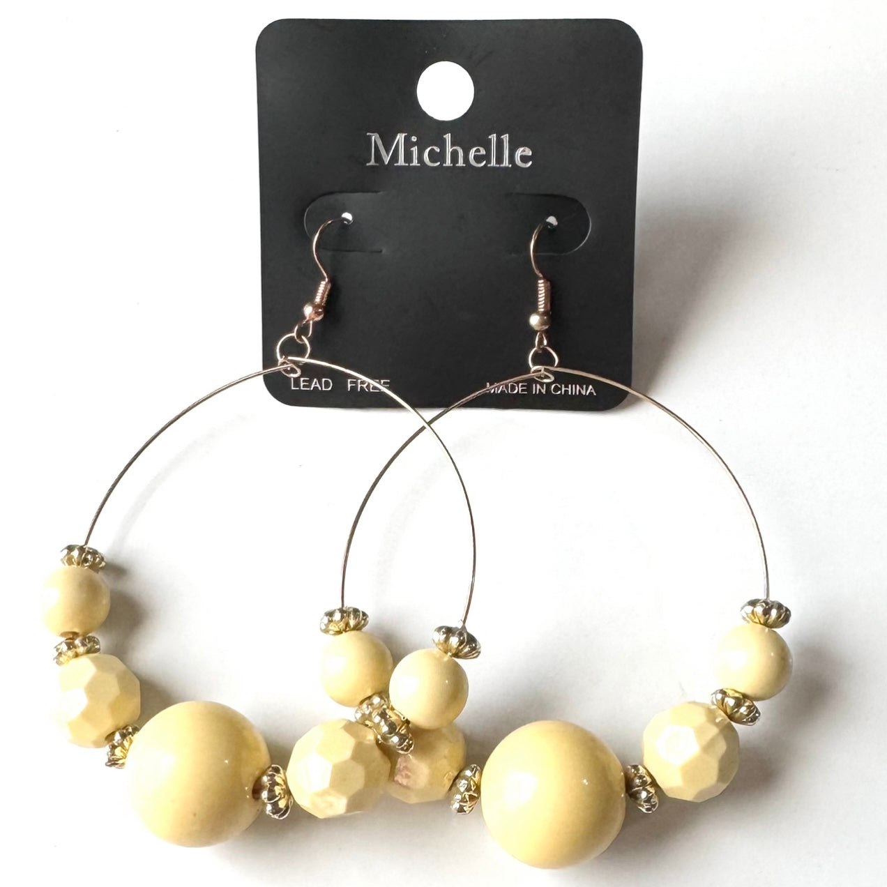 Dangle Earrings Yellow Beaded Hoops