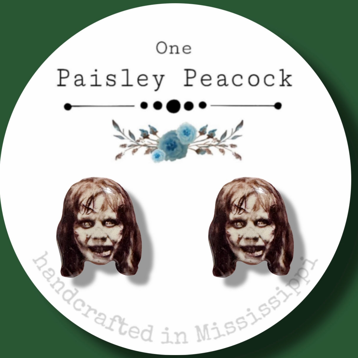 Handmade plastic post earrings measure roughly 1/2 inch in diameter or length. Sealed with a high gloss finish. Comes with surgical stainless steel posts.