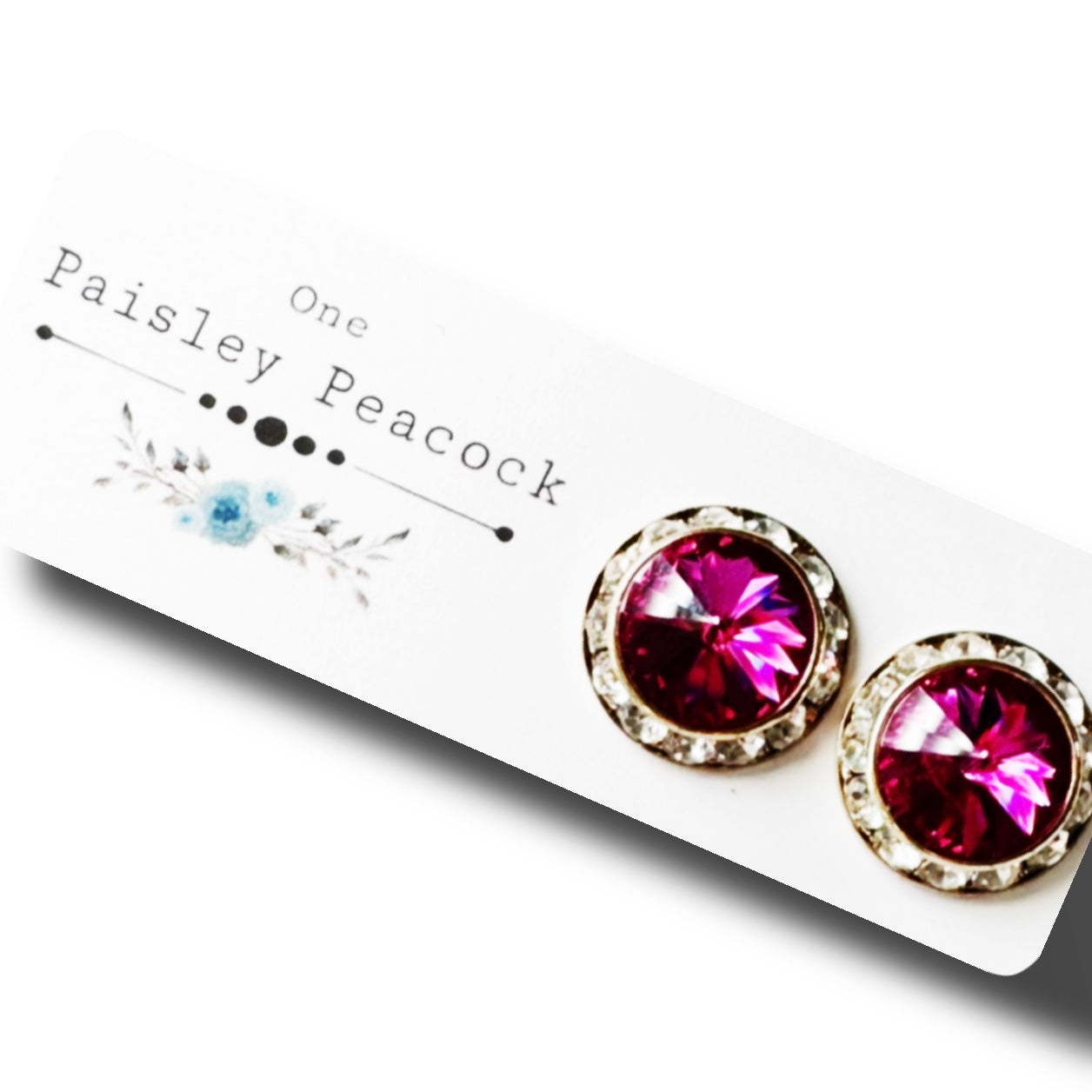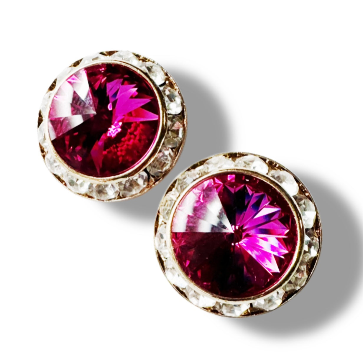 Gold plated pink stone with clear rhinestones measure 1 inch in diameter